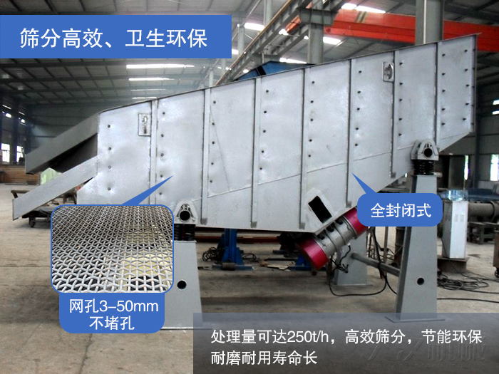 YK系列的振動篩的網孔一般在3-50mm之間,處理量可達250t/h,保證高效篩分不堵孔;全封閉式解夠避免物料出現溢散現象,密封性好。同時YK系列的振動篩采用的高強度的鋼材制成,耐磨耐用壽命長。