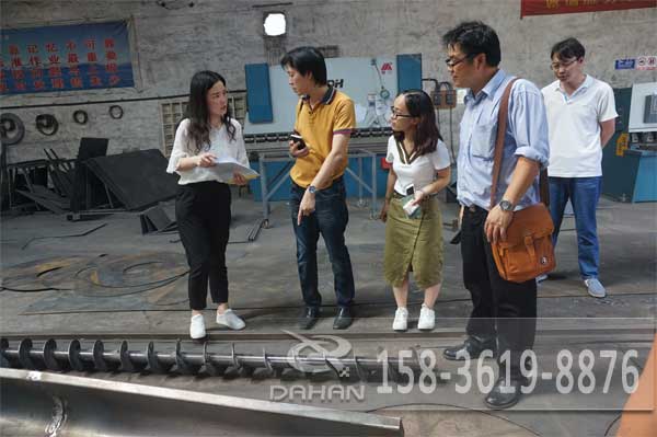 7月19日泰國客戶帶著物料玻璃微珠來訪大漢公司,親臨生產部試機,首先選用的DH-600-1S三次元振動篩,后又選用直徑600型超聲波振動篩,效果贊不絕口。之后參觀了DZSF系列直線篩生產車間和螺旋輸送機制造車間。