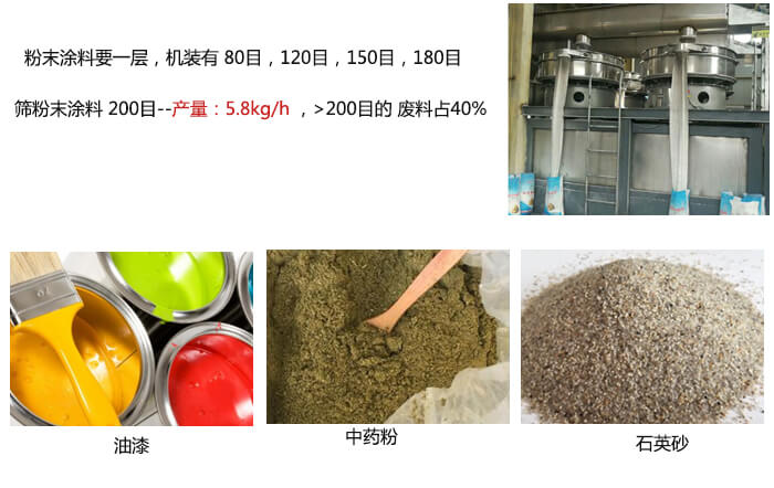 600型涂料振動篩是一種通用的振動篩分、過濾設備,在粉體、小顆粒以及液體物料都有著良好的應用。廣泛適用于化工、醫(yī)藥、糧食、食品、金屬、冶金、礦業(yè)、公害處理等眾多行業(yè)的篩選分級過濾生產(chǎn)工藝,以下針對各行業(yè)選出一些代表性物料舉例說明三次元振動篩粉機適用范圍: