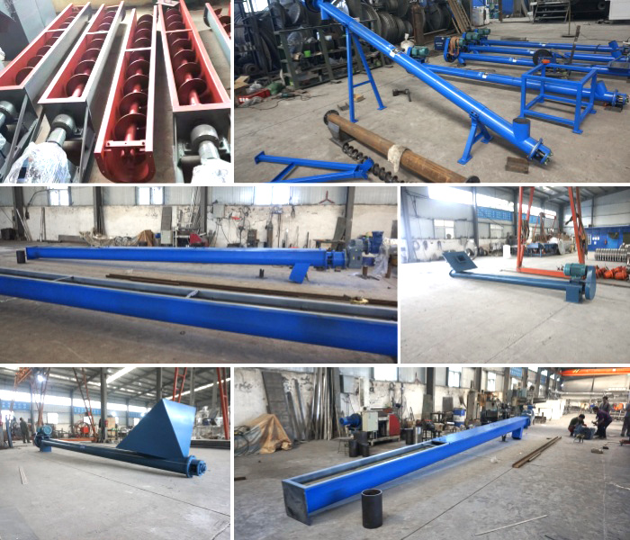 螺旋輸送機(jī)傾斜輸送,高度提升,料口采用料斗的試機(jī)形式,方便投料,防止撒料等優(yōu)勢。