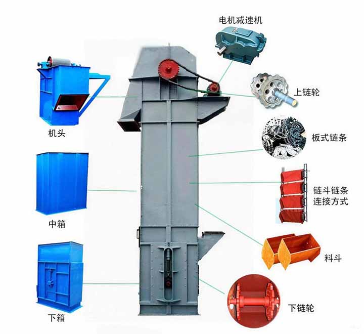 NE板鏈斗式提升機(jī):料斗,減速機(jī),鏈條,齒輪
